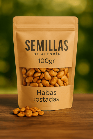Granos de soya seleccionados y tostados lentamente, sin sal, sin aceite, sin conservantes. Ricos en proteína vegetal completa, fibra, hierro y calcio, ideales para mantener la saciedad, apoyar la salud muscular y brindar energía sostenida.